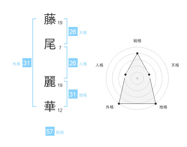 藤尾 麗華さんの総格は57画の4点!