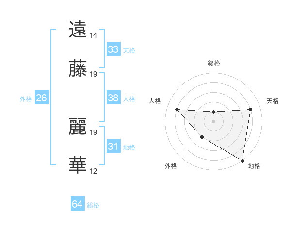 遠藤 麗華さんの総格は64画の1点!