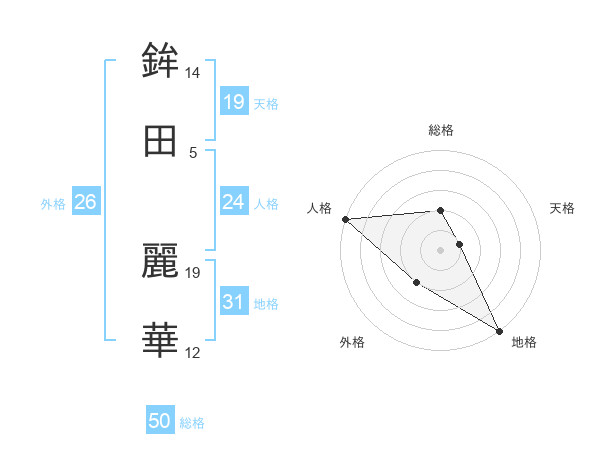 鉾田 麗華さんの総格は50画の2点!