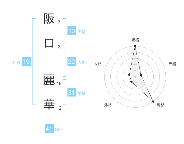 阪口 麗華さんの外格は19画の1点!
