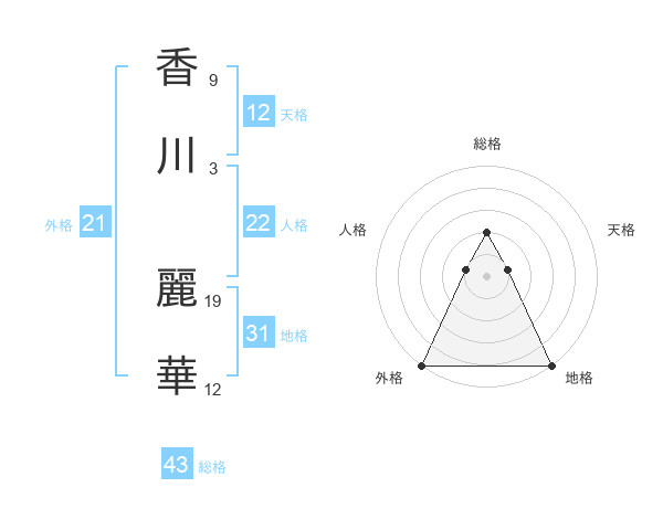 香川 麗華さんの総格は43画の2点!