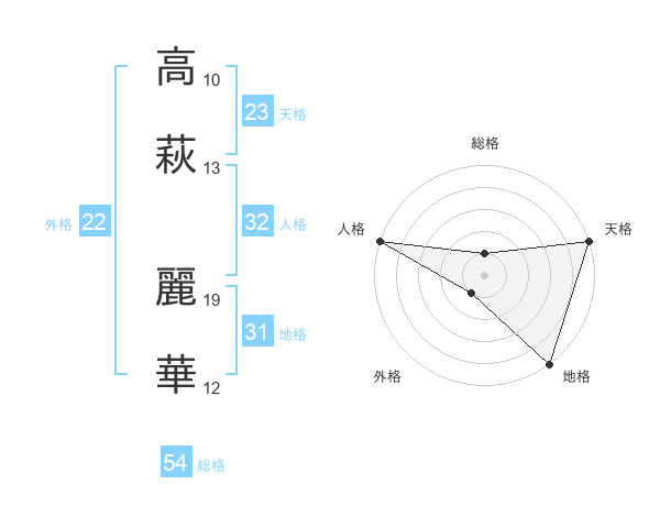 高萩 麗華さんの総格は54画の1点!