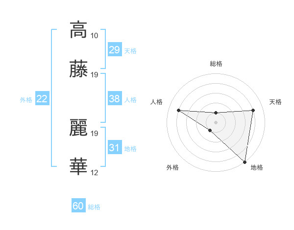高藤 麗華さんを姓名の画数から五運を鑑定