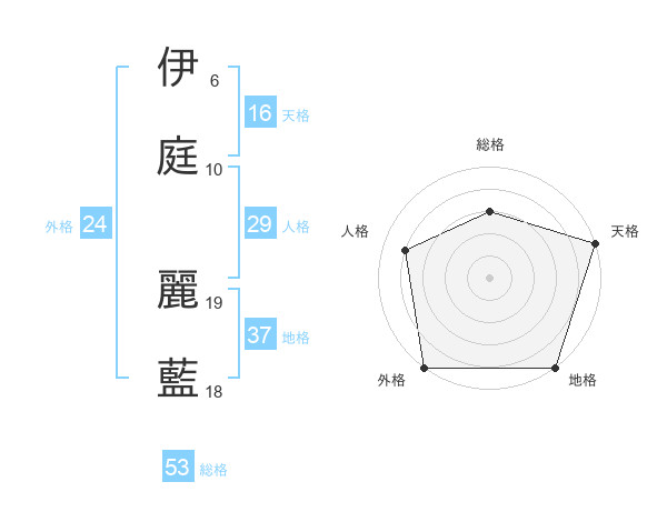 伊庭 麗藍さんを姓名の画数から五運を鑑定
