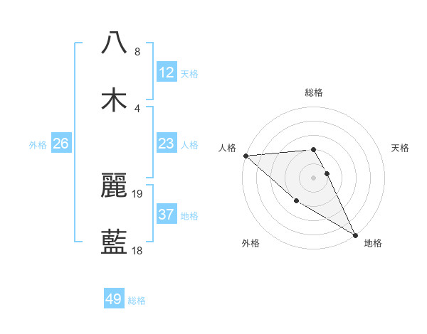 八木 麗藍さんを姓名の画数から五運を鑑定