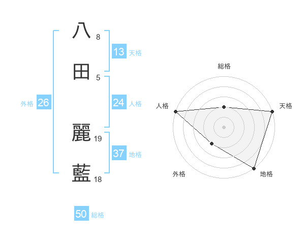 八田 麗藍さんの総格は50画の2点!