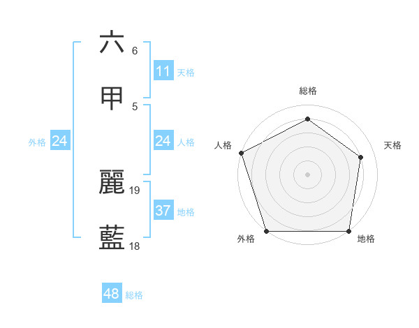 六甲 麗藍さんを姓名の画数から五運を鑑定