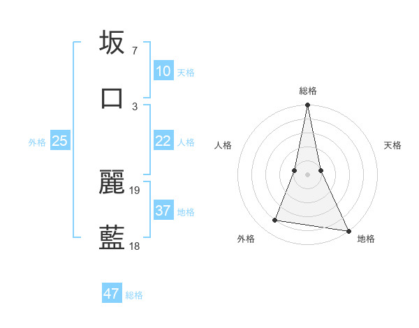 坂口 麗藍さんの総格は47画の5点!
