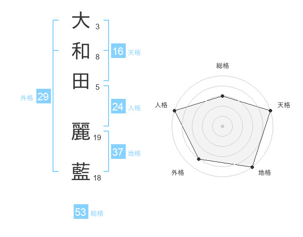 大和田 麗藍さんの天格は16画の5点!