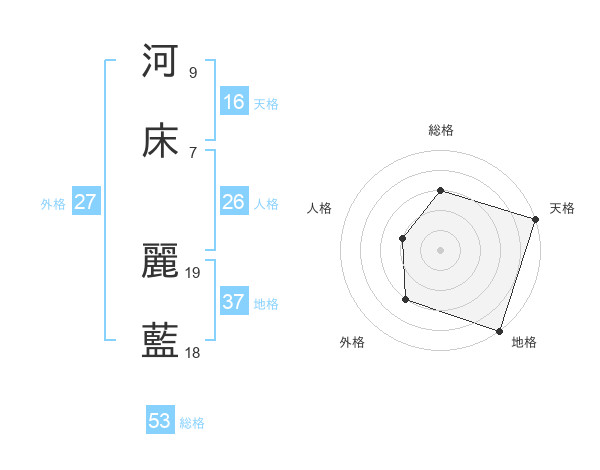 河床 麗藍さんを姓名の画数から五運を鑑定
