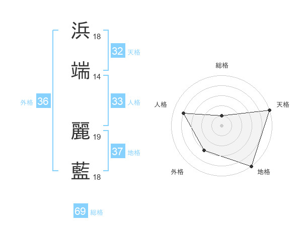 浜端 麗藍さんの天格は32画の5点!