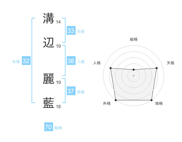 溝辺 麗藍さんの総格は70画の1点!
