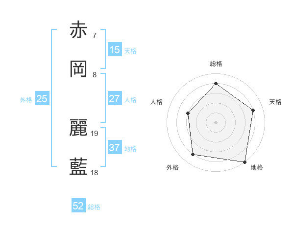 赤岡 麗藍さんを姓名の画数から五運を鑑定