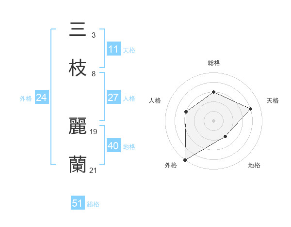 三枝 麗蘭さんを姓名の画数から五運を鑑定