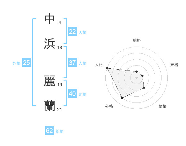 中浜 麗蘭さんを姓名の画数から五運を鑑定