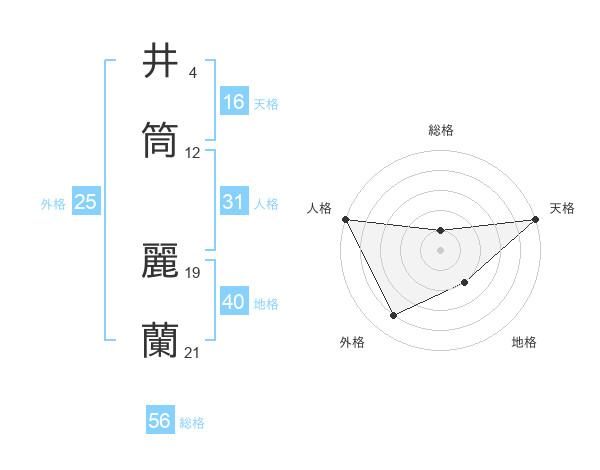 井筒 麗蘭さんの天格は16画の5点