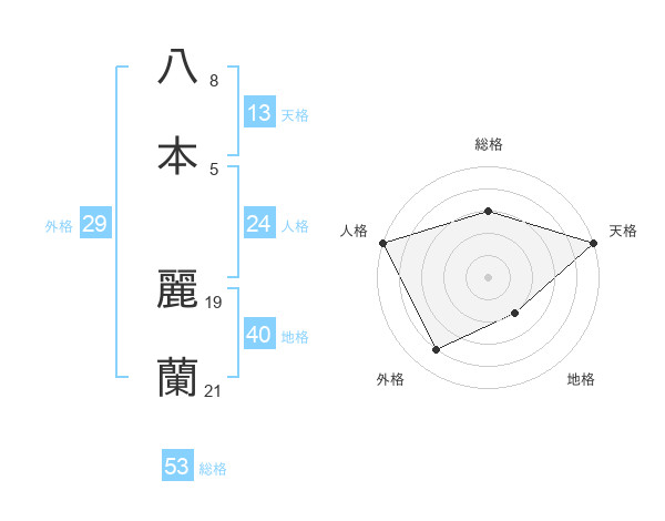 八本 麗蘭さんを姓名の画数から五運を鑑定