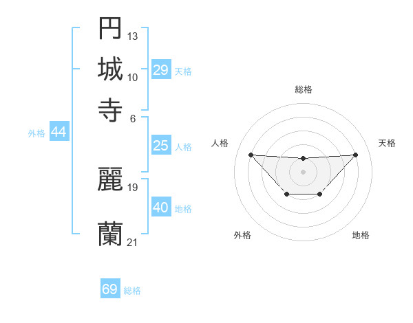 円城寺 麗蘭さんの総格は69画の1点!