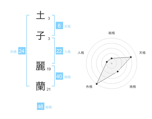 土子 麗蘭さんを姓名の画数から五運を鑑定