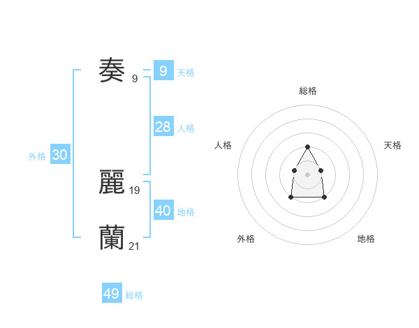 奏 麗蘭さんを姓名の画数から五運を鑑定