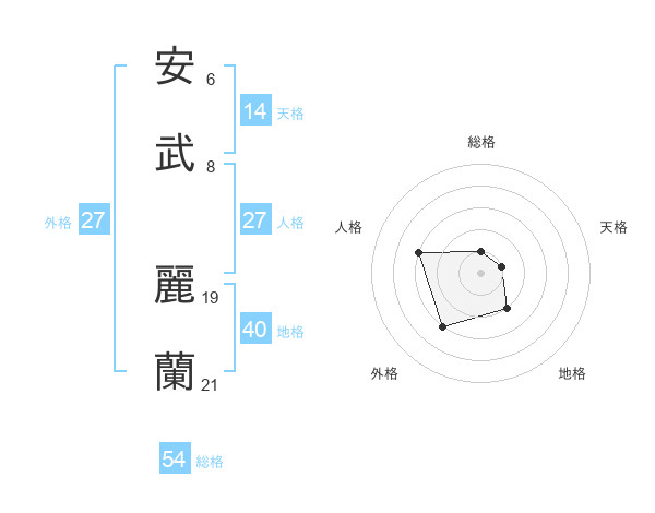 安武 麗蘭さんを姓名の画数から五運を鑑定