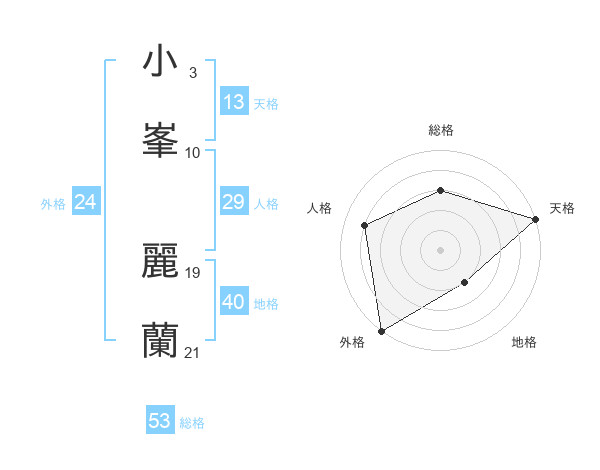 小峯 麗蘭さんを姓名の画数から五運を鑑定