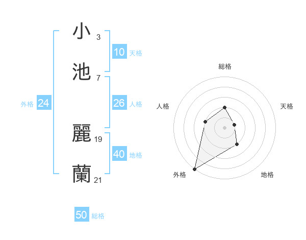 小池 麗蘭さんを姓名の画数から五運を鑑定
