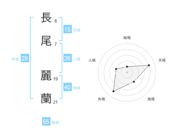 長尾 麗蘭さんを姓名の画数から五運を鑑定