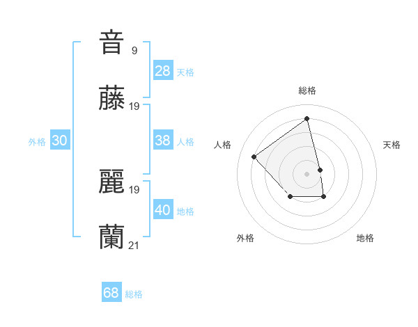 音藤 麗蘭さんを姓名の画数から五運を鑑定