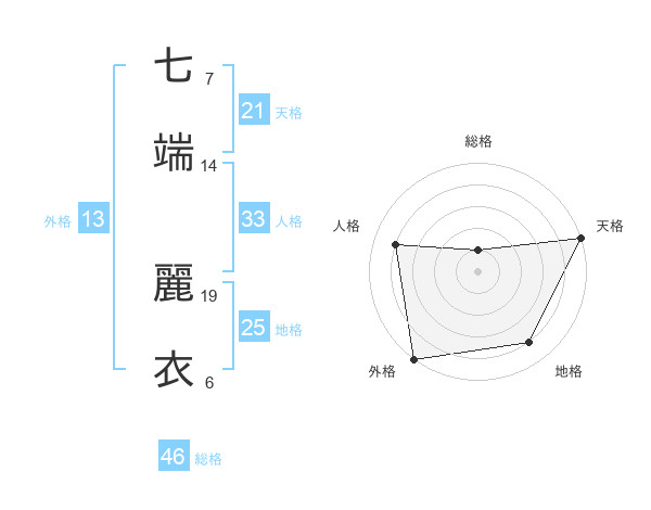 七端 麗衣さんの地格は25画の4点!