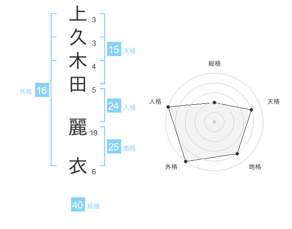 上久木田 麗衣さんを姓名の画数から五運を鑑定