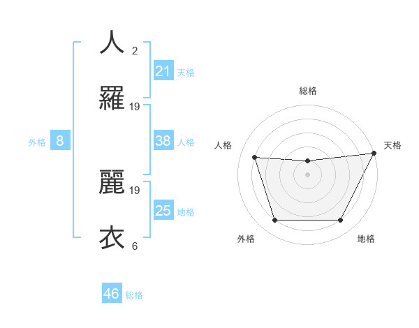 人羅 麗衣さんを姓名の画数から五運を鑑定