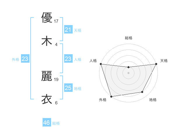 優木 麗衣さんを姓名の画数から五運を鑑定