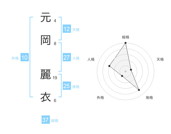 元岡 麗衣さんの総格は37画の5点!