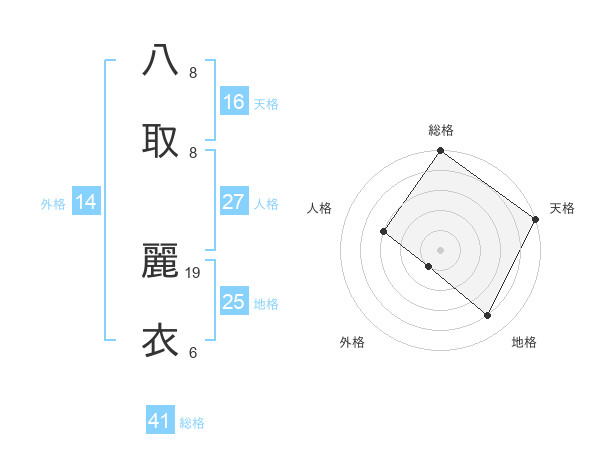 八取 麗衣さんを姓名の画数から五運を鑑定