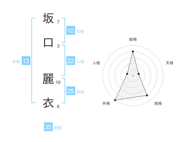 坂口 麗衣さんを姓名の画数から五運を鑑定