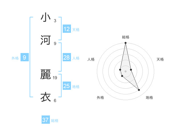 小河 麗衣さんを姓名の画数から五運を鑑定