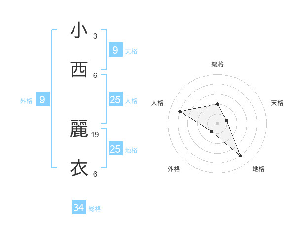 小西 麗衣さんの地格は25画の4点!