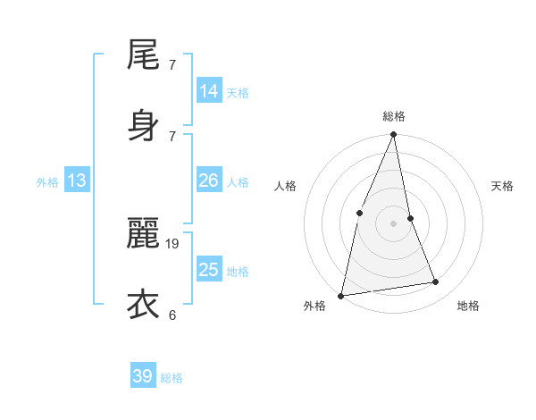 尾身 麗衣さんを姓名の画数から五運を鑑定