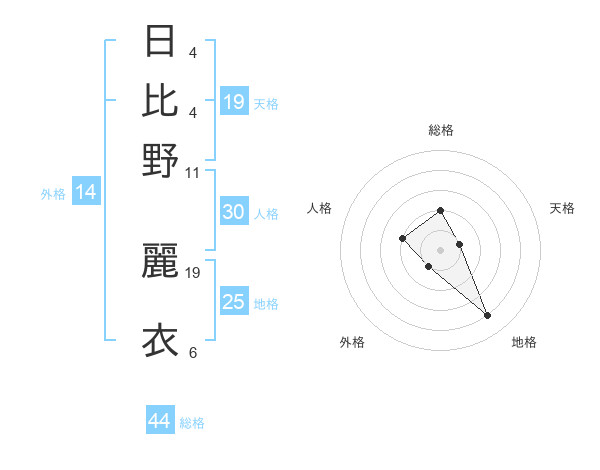 日比野 麗衣さんの総格は44画の2点!