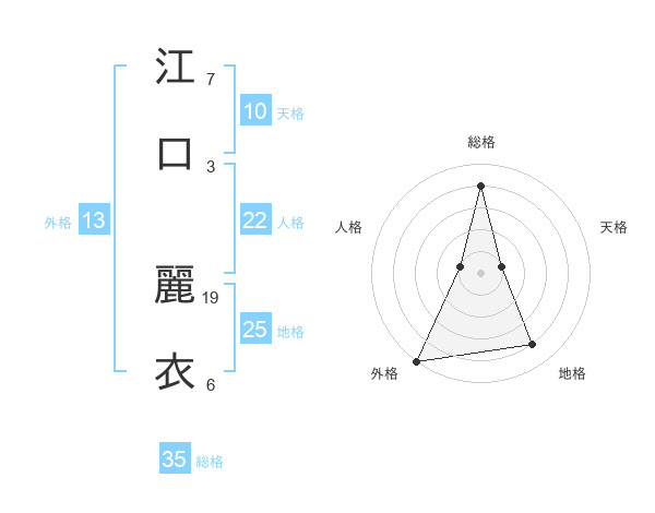 江口 麗衣さんの総格は35画の4点!
