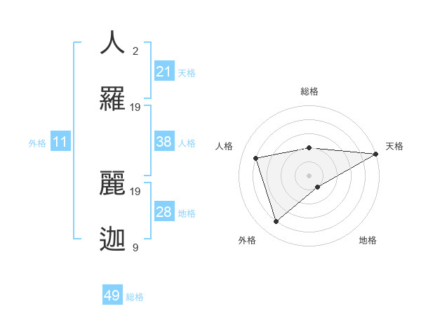 人羅 麗迦さんの天格は21画の5点!