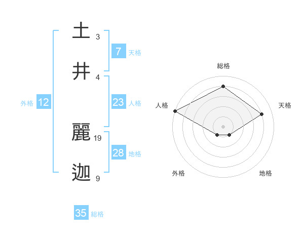 土井 麗迦さんの総格は35画の4点!