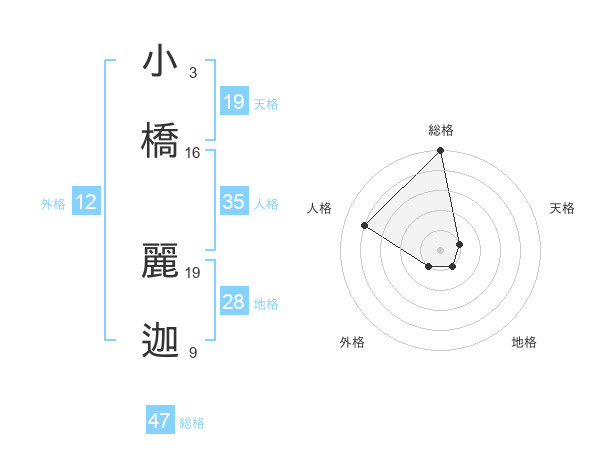小橋 麗迦さんを姓名の画数から五運を鑑定