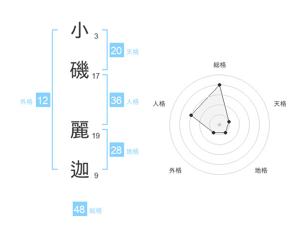 小磯 麗迦さんの天格は20画の1点!