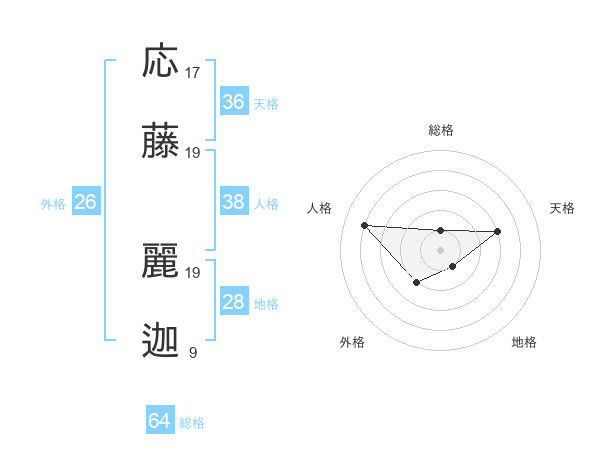 応藤 麗迦さんの総格は64画の1点!