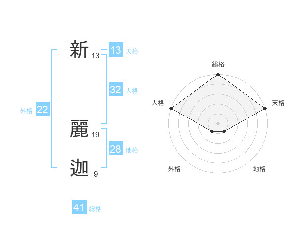 新 麗迦さんの総格は41画の5点!