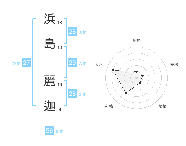 浜島 麗迦さんを姓名の画数から五運を鑑定
