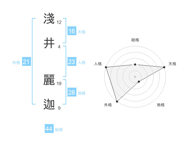 淺井 麗迦さんの外格は21画の5点!
