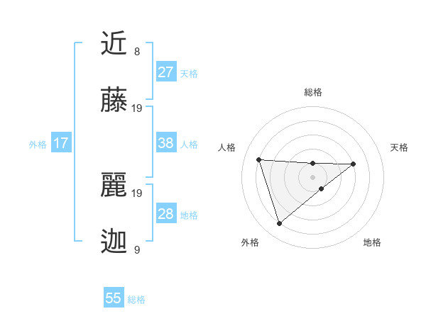 近藤 麗迦さんを姓名の画数から五運を鑑定